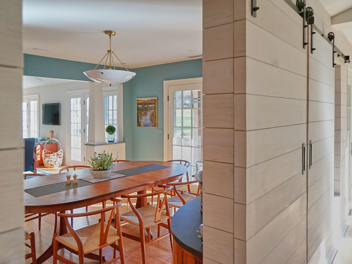 Created a flexible wall that opens & closes the family room to the rest of the open plan kitchen/living area.
